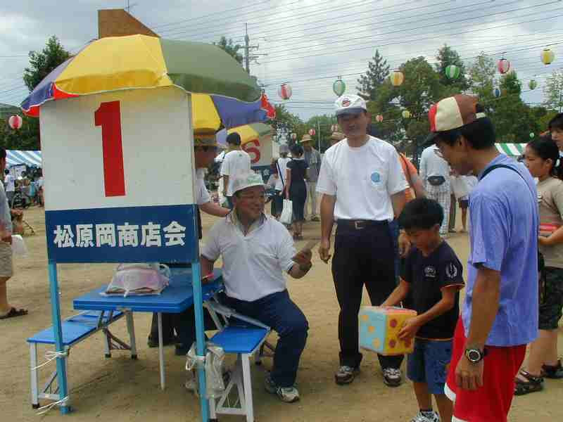 人間スゴロクオリエンテーリング 2001年8月5日まつばら市民まつり磯野 松原市商店会連合会は、まつばら市民まつりを応援しています。 1991年(平成3年)から、「人間すごろくオリエンテーリング」で参加しています。 人間スゴロクオリエンテーリング