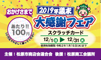 大感謝フェアの抽選券がWチャンスになる、松原駅前商店会グッズが当たります。